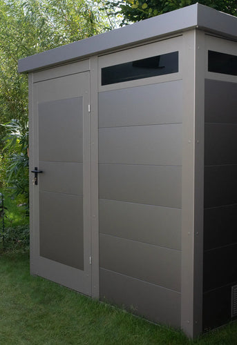 Ein Gerätehaus in Metall-Optik, jedoch in ansprechendem Design
